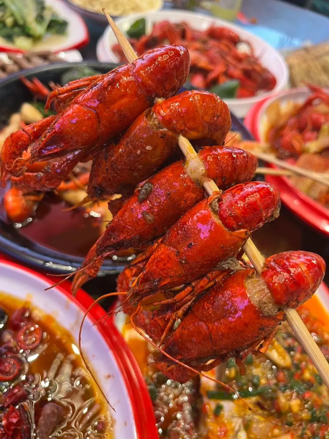 烤龍蝦:夏季的夜晚,來幾串烤龍蝦,飽滿的肉汁在口中迸發(fā),讓人忍不住一串接一串。