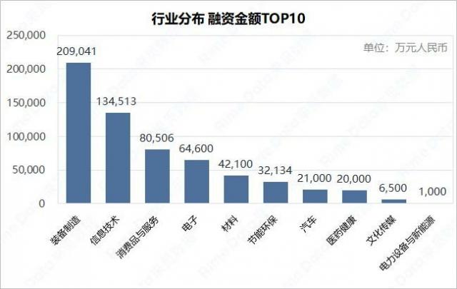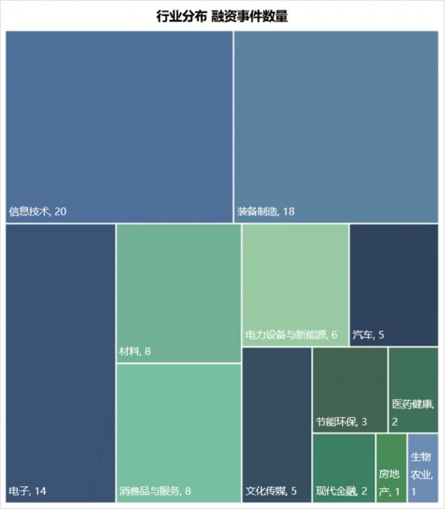 按融資金額統(tǒng)計(jì),前五行業(yè)依次為裝備制造、信息技術(shù)、消費(fèi)品與服務(wù)、電子以及材料,前五行業(yè)的融資金額合計(jì) 53.08 億元,占融資總額 86.39%,融資金額上行業(yè)集中度較上周有所回落。從融資金額來(lái)看,本周裝備制造居首,主要是受多起具身智能賽道的大額融資事件影響。