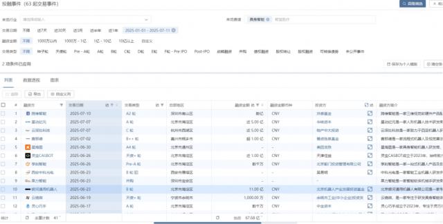 截至 2025 年 07 月 11 日 18:00,本周融資事件共 93 起(不包括并購(gòu)、定增),比上周少了 15 起。融資金額總計(jì)約 61.44 億元(謹(jǐn)慎估計(jì)),較上周減少 52.25 億元。本周融資金額在億元及以上的融資事件有 22 起,比上周少 6 起。本周公開(kāi)退出案例 32 個(gè),和上周一樣。另外,本周有 124 家機(jī)構(gòu)參與一級(jí)市場(chǎng)投資,比上周多了 27 家。