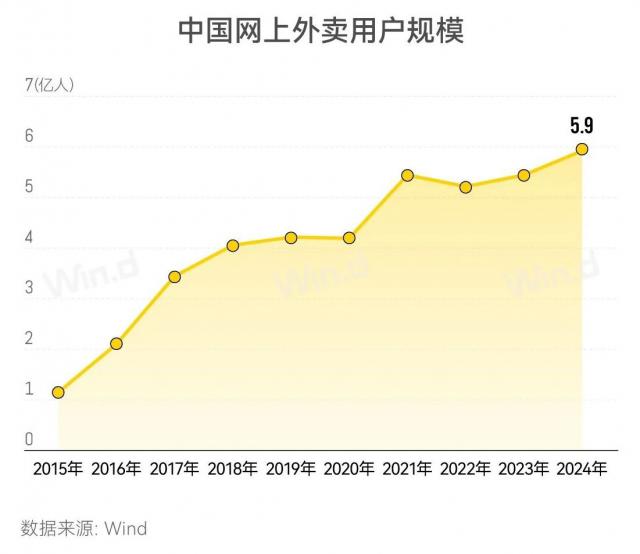 Wind 數(shù)據(jù)顯示,中國外賣市場(chǎng)規(guī)模持續(xù)增長,早已突破萬億元。截至 2024 年底,中國外賣用戶規(guī)模超過 5.92 億人。市場(chǎng)長期呈現(xiàn)“雙寡頭”格局,美團(tuán)和餓了么占據(jù)了市場(chǎng)的絕大部分份額。2025 年,隨著京東外賣的加入,市場(chǎng)競(jìng)爭(zhēng)進(jìn)一步加劇,形成了“三足鼎立”的局面。此外,2025 年中國外賣行業(yè)進(jìn)入“品質(zhì)消費(fèi)升級(jí)”階段,平臺(tái)開始注重供應(yīng)鏈優(yōu)化、配送效率提升、食品安全監(jiān)管等方面的建設(shè)。