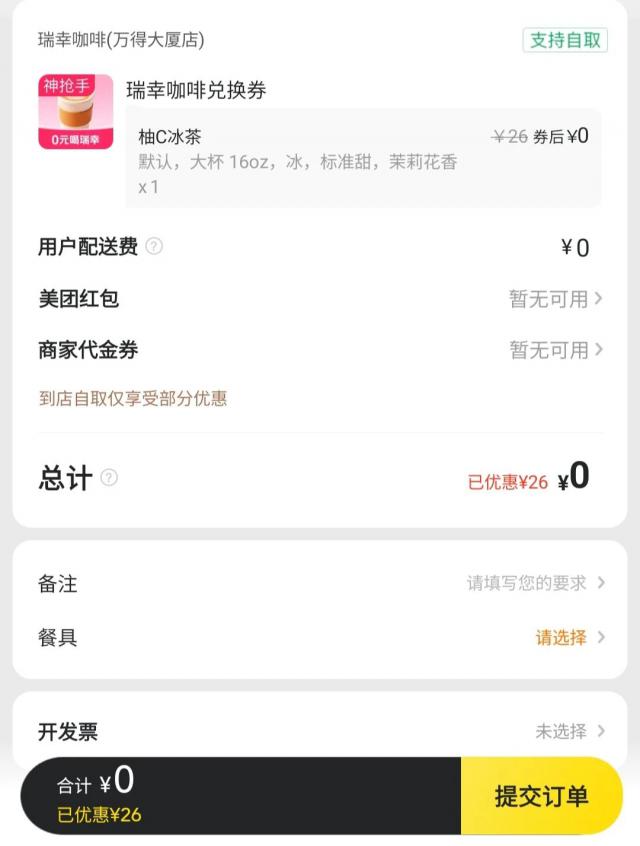 本周末,“外賣大戰(zhàn)”再度打響。淘寶閃購、美團(tuán)紛紛發(fā)放外賣大額券。小編就在美團(tuán)上 0 元買到了公司樓下的一杯瑞幸咖啡。