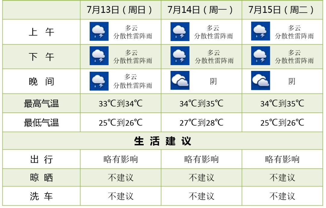 未來(lái)幾天,我市天氣以云系變化為主,會(huì)有分散性陣雨或雷雨。氣溫將緩慢上升,預(yù)計(jì)14日和15日,最高氣溫又將回升到35℃左右。提醒大家注意做好防暑降溫措施。