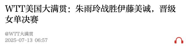 在WTT美國(guó)大滿貫2025女單半決賽中,朱雨玲以4 - 2的成績(jī)戰(zhàn)勝伊藤美誠(chéng),順利晉級(jí)女單決賽。