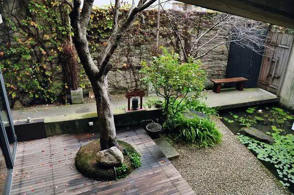 推開虛掩的院門,走過一座石橋,蓮葉點(diǎn)綴其間,水流無聲,兩旁的黃梔與梅子樹隨風(fēng)搖曳,仿佛隔絕了都市喧囂。由此開始,便是“求道之路”。在菩薩寺的設(shè)計(jì)理念中,無論是回旋還是垂直的動(dòng)線,都詮釋著求道時(shí)的心境。