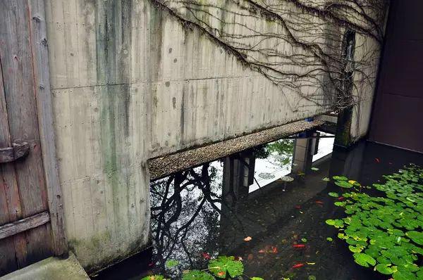 在臺(tái)中大里區(qū)的街道上,有一座清水混凝土建筑安靜佇立。街道旁有棵幾十年樹齡的老梅樹,樹后的院墻不高,水流順墻而下,形成一道水簾。遠(yuǎn)遠(yuǎn)望去,這座優(yōu)雅的現(xiàn)代建筑便是一座寺廟。