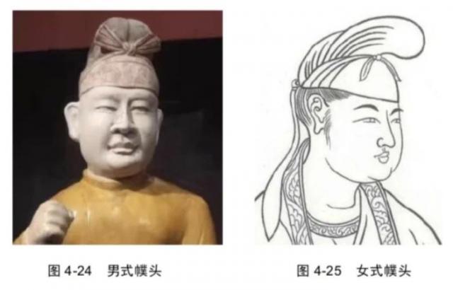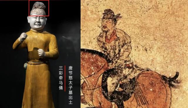 在章懷太子李賢墓及節(jié)愍太子墓等出土的人物雕像和壁畫(huà)中,也經(jīng)常能看到這樣的形象,它類似于我們現(xiàn)在的包頭巾。