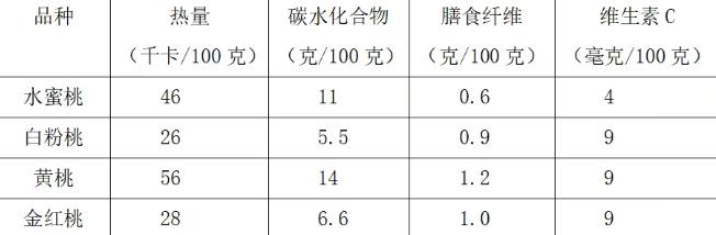 不同品種桃子營養(yǎng)成分比較 數(shù)據(jù)來自《中國食物成分表(第6版)》