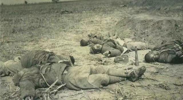 在夜襲陽明堡戰(zhàn)斗后,日軍拍下的一張照片中,八路軍犧牲的戰(zhàn)士穿著單薄的衣衫,腳上穿的還是草鞋。在這樣艱苦的條件下與敵人殊死搏斗,他們的堅韌與無畏令人動容。