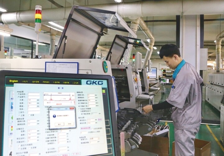 公司總經(jīng)理助理李中華向記者介紹,公司有多條全自動(dòng)光學(xué)檢測(cè)生產(chǎn)線,貼裝效率在行業(yè)中處于領(lǐng)先地位。