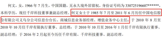千岸科技59歲副總何文:曾在中國電信任職26年,與董事長何定為姐弟