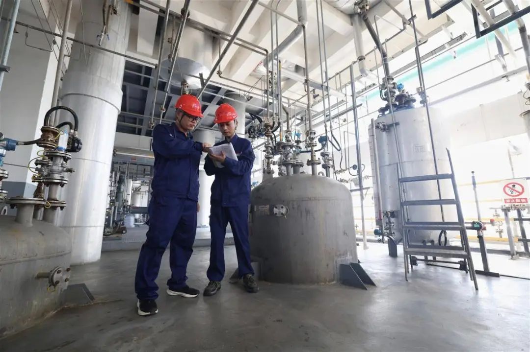 7月10日中午時(shí)分,湖北固潤(rùn)科技化工園區(qū)內(nèi)熱浪滾滾。在裝置區(qū)里,巡檢員們專注地站在設(shè)備前,認(rèn)真逐項(xiàng)核對(duì)設(shè)備的運(yùn)行數(shù)據(jù)。他們的工裝后背早已被汗水濕透,但手中的點(diǎn)檢動(dòng)作依舊嚴(yán)謹(jǐn)細(xì)致,每一個(gè)閥門(mén)的狀態(tài)、儀表的讀數(shù)都被精準(zhǔn)記錄下來(lái)。即便高溫難耐,他們也沒(méi)有降低工作標(biāo)準(zhǔn),用汗水和專注默默守護(hù)著生產(chǎn)安全的第一道防線。