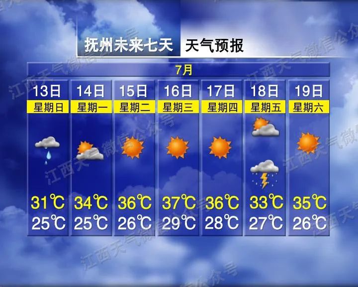 南昌今天仍有雷雨,最高氣溫為32℃。不過明天開始雨水暫歇,氣溫也有所上升,下周三最高氣溫又將達(dá)到38℃,飆升6℃!下周四開始雨水又將回歸。