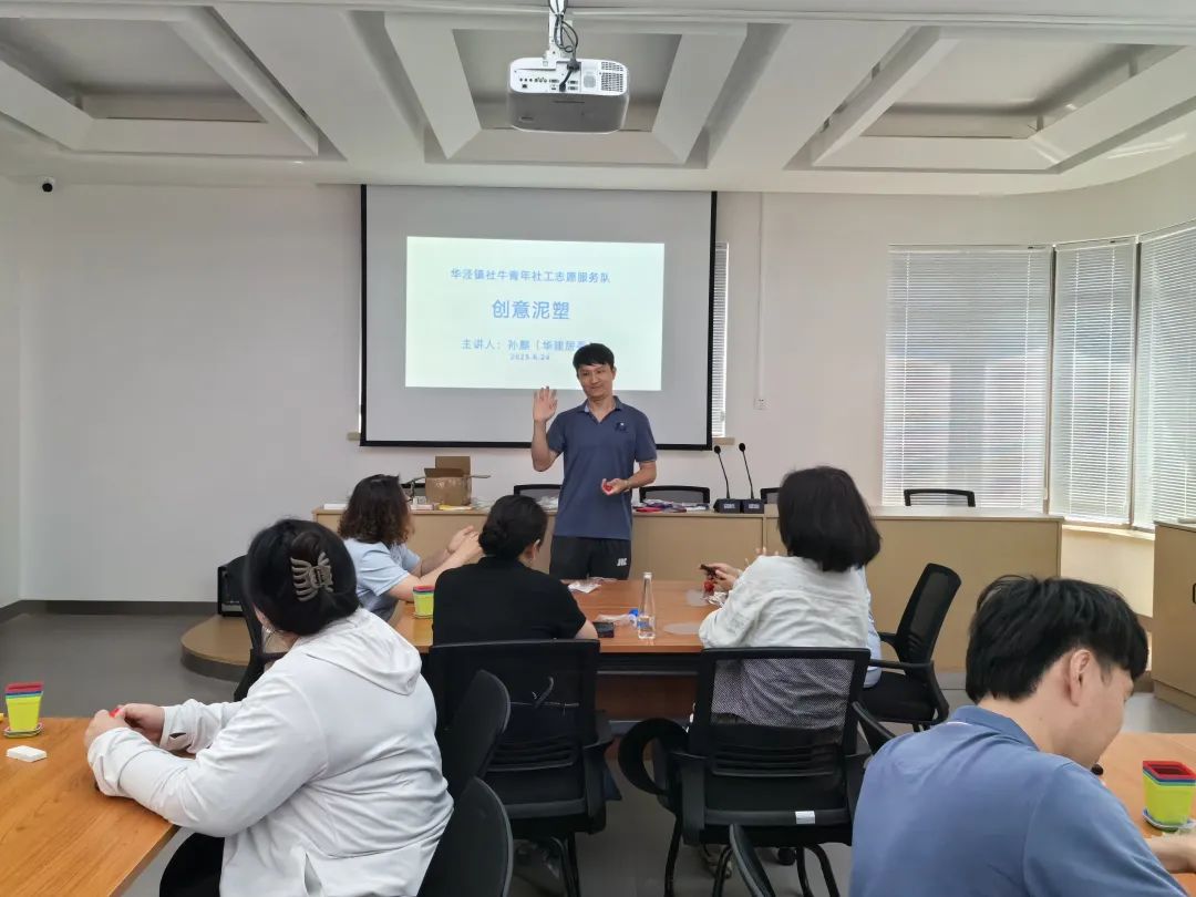 在關(guān)注居民心理健康的同時(shí),華涇鎮(zhèn)也十分重視社區(qū)社工的心理狀態(tài),精心打造了“社工減壓三重奏”。成立了“華涇鎮(zhèn)社牛青年社工志愿服務(wù)隊(duì)”,從社工隊(duì)伍中挑選了10名平均年齡35 +的“80后”“90后”青年達(dá)人,他們?cè)诤姹骸@藝等多個(gè)領(lǐng)域有專(zhuān)長(zhǎng)。這些青年達(dá)人成為社區(qū)講師,開(kāi)展沉浸式、互動(dòng)性強(qiáng)的文化體驗(yàn)活動(dòng),幫助社工提升專(zhuān)業(yè)技能,緩解工作壓力。