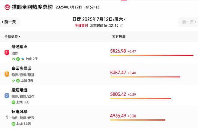 按道理說,這應該是今年的重磅網大了。不過目前《赴湯蹈火》仍處于網絡電影熱度第一的位置,接下來就看它能斬獲多少分賬票房,為今年的網大爭點面子了。