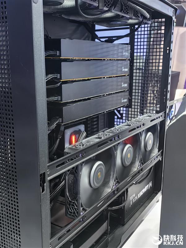 銘瑄的終極大招是由四塊雙芯卡組成的大型工作站,顯存合計(jì)達(dá)到了192GB!