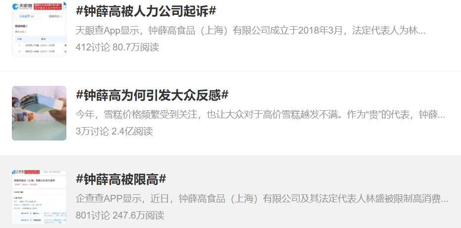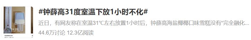2022年,“鐘薛高31度室溫下放1小時(shí)不化”登上多平臺(tái)熱搜,微博話題閱讀量超12億。此后,鐘薛高負(fù)面不斷,“鐘薛高為何引發(fā)大眾反感”也登上熱搜。至此,鐘薛高靠流量塑造的高端品牌形象徹底崩塌。