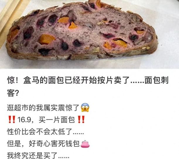 2025年4月,盒馬一款標(biāo)價(jià)16.9元/片的“歐坦得酵醒切片歐包”引發(fā)熱議,被網(wǎng)友稱為“面包刺客”。盒馬官方解釋其“含酸面團(tuán)”的價(jià)值,但網(wǎng)友認(rèn)為口感與普通面包差異不大。