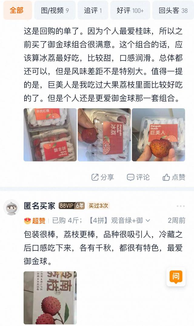 從去年和上個(gè)月的稀有荔枝四拼反饋看,觀音綠很受歡迎。