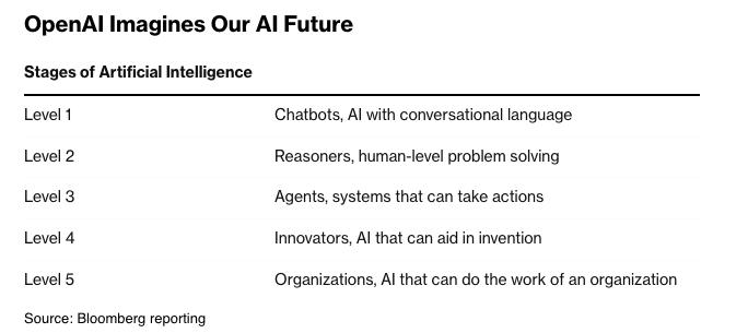 OpenAI提出的AGI五階段理論 圖片來(lái)自:Bloomberg