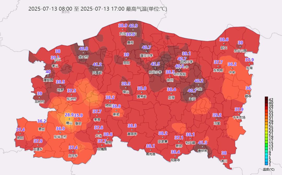 最高氣溫42.5℃出現(xiàn)在鄭州市的陽光小學(xué)站