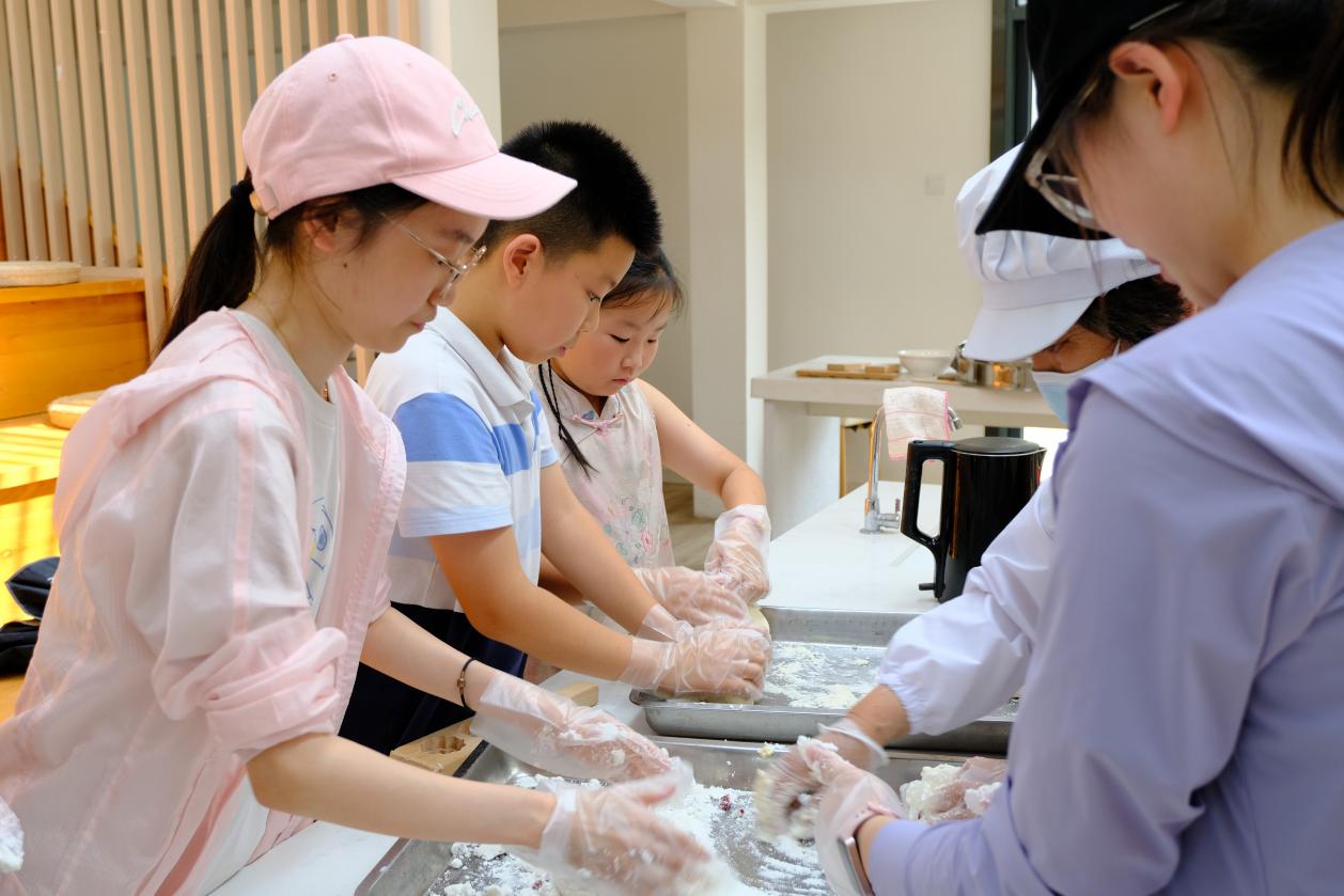 在新村稻米文化中心,復旦的隊員和新村的小朋友一起制作崇明板糕與印糕。當印糕從模具中脫出,板糕在蒸屜里鼓起,那指尖的觸感和舌尖的清甜,成為了最生動的鄉(xiāng)土教材。如今稻米文化的手藝傳承,蘊含著“一分耕耘一分收獲”的墾拓初心。