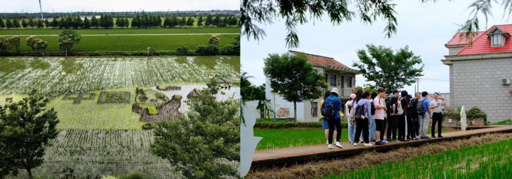 新村鄉(xiāng)很早就開始探索文化賦能自身振興的道路。新村鄉(xiāng)人“墾拓”“進取”“創(chuàng)新”的五十多年歷史,是一筆寶貴的精神財富。鄉(xiāng)里建成了集文化展示、稻米加工和智慧農(nóng)業(yè)于一體的“稻1968”稻米文化展示館;打造了“五彩稻田”稻田畫和觀稻臺,搭配曲折的步道,以稻之道關(guān)聯(lián)生活之道。如何更好地講好“一粒米的故事”,讓稻米文化得到充分利用并廣泛傳播,這是新村鄉(xiāng)向?qū)嵺`隊提出的發(fā)展問題。