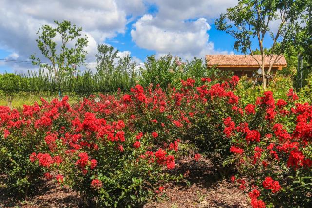 園內(nèi)90%的紫薇品種由國內(nèi)企業(yè)自主培育,有‘夏日舞娘’‘少女芯’‘紫貴妃’‘英紅田園’‘巧克力’‘午夜’等18個品種,僅‘馬斯科吉’和‘天鵝絨’來自美國。