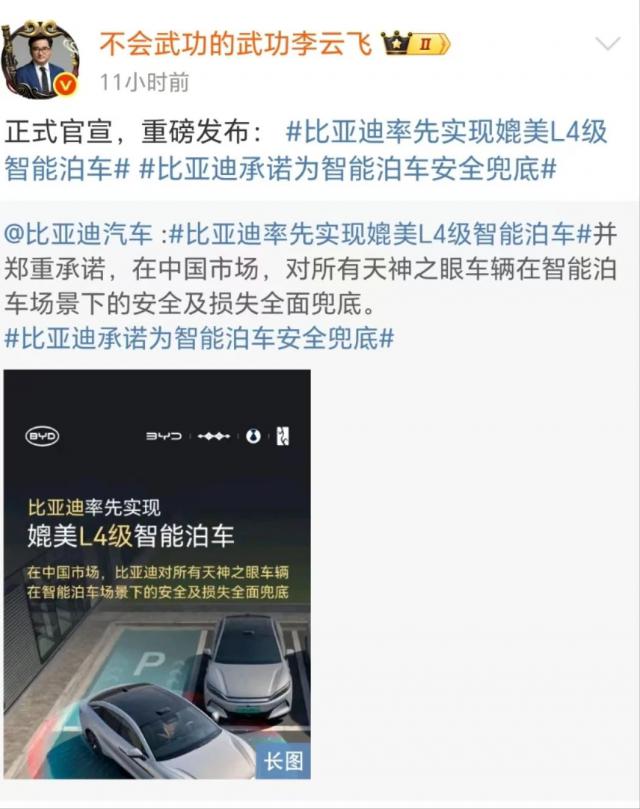 值得一提的是,比亞迪近期的市場策略已經(jīng)從“價(jià)格競爭”轉(zhuǎn)向“服務(wù)升級(jí)”。7 月 9 日,比亞迪宣布搭載“天神之眼”系統(tǒng)的車型將實(shí)現(xiàn)媲美 L4 級(jí)的智能泊車功能,并且承諾對(duì)泊車過程中的安全和潛在損失全面負(fù)責(zé),成為行業(yè)內(nèi)首個(gè)為智能泊車風(fēng)險(xiǎn)“買單”的品牌。