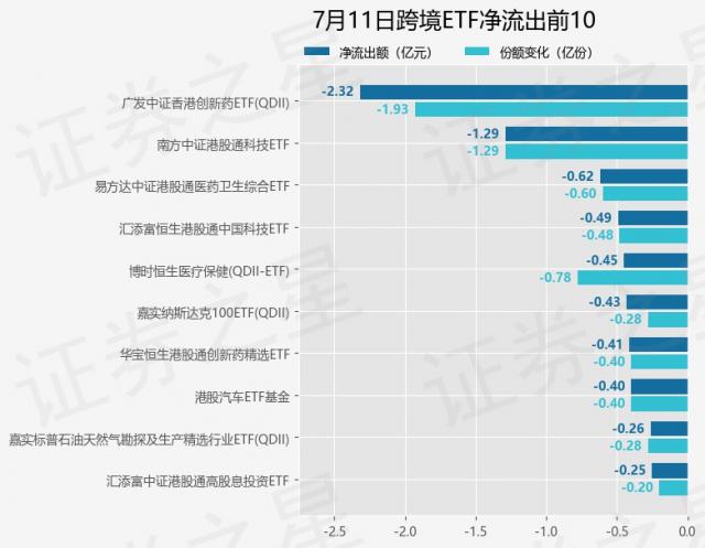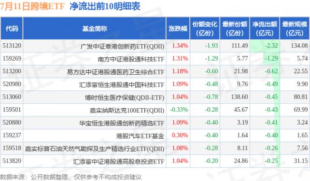 與此同時(shí),當(dāng)日有36只跨境ETF基金出現(xiàn)資金凈流出。其中,廣發(fā)中證香港創(chuàng)新藥ETF (QDII) (513120)凈流出額最多,其份額減少了1.93億份,凈流出金額為2.32億元。