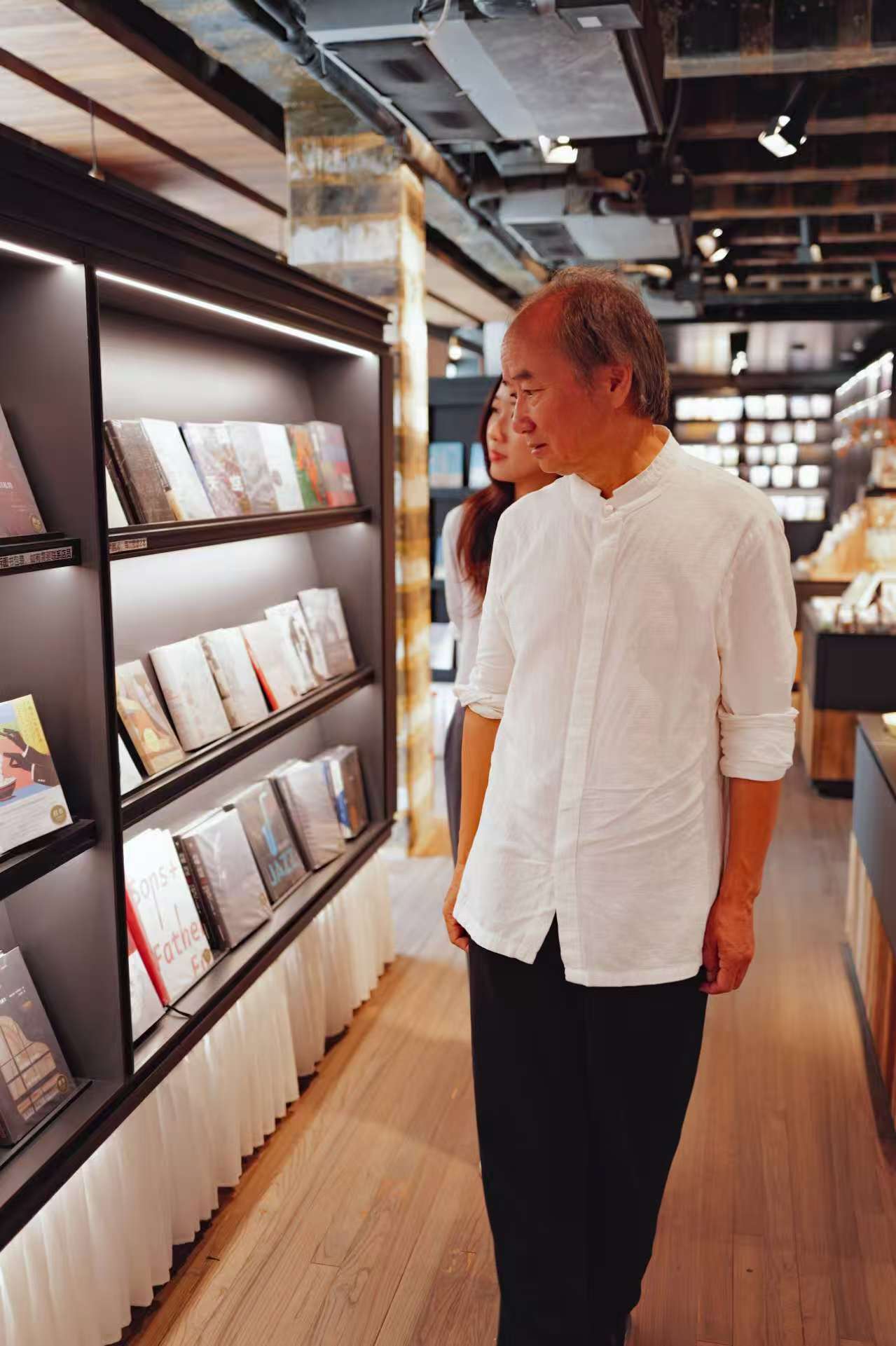 作家劉亮程與澎湃新聞記者在上海Citywalk。攝影:李思潔