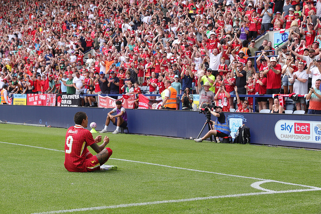 比賽中,利物浦占據(jù)主動(dòng)。第33分鐘,布拉德利包抄推射,利物浦1比0領(lǐng)先。第53分鐘,普雷斯頓后場(chǎng)失誤,努涅斯單刀破門,2比0。