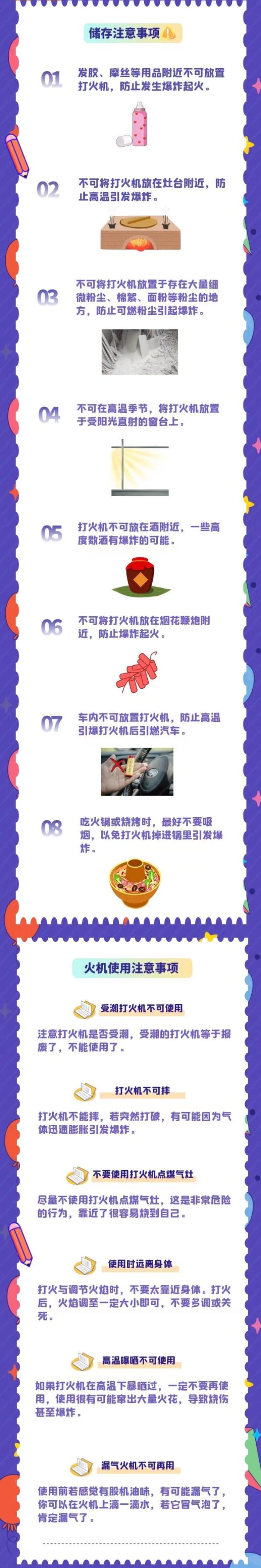 打火機在給人們的生活提供便利的同時,因其特殊的性能,如果操作不當(dāng),就會引發(fā)危險。下面這些打火機安全常識,大家快來一起了解一下。