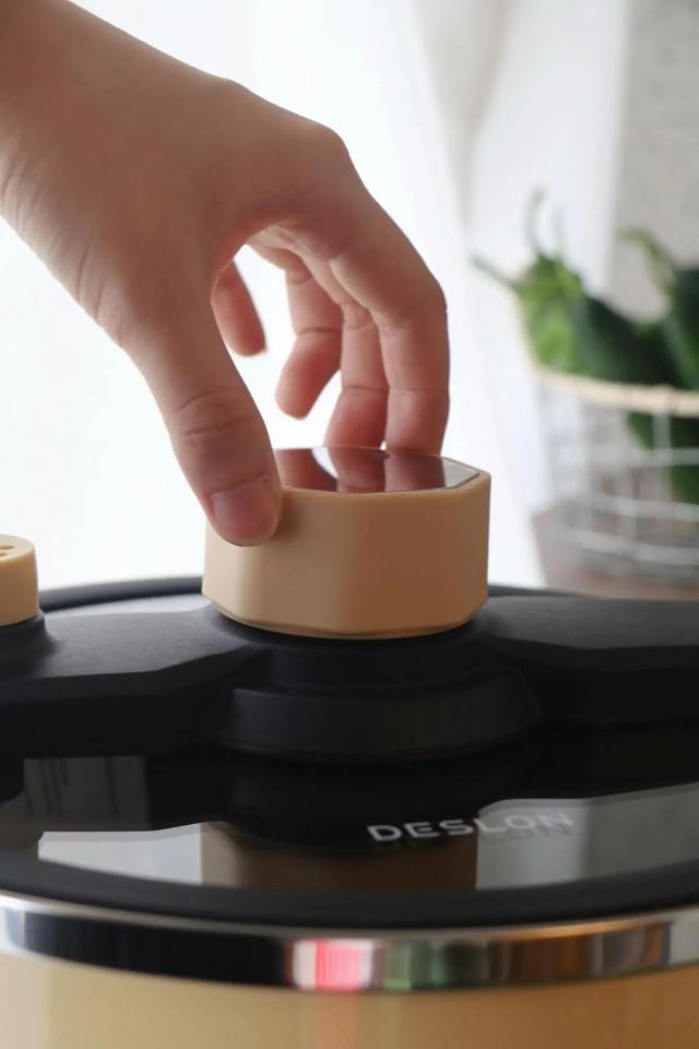 ?旋轉(zhuǎn)式提鈕,單手即可操作,同時(shí)防止誤觸開(kāi)蓋,不怕被蒸汽燙傷。