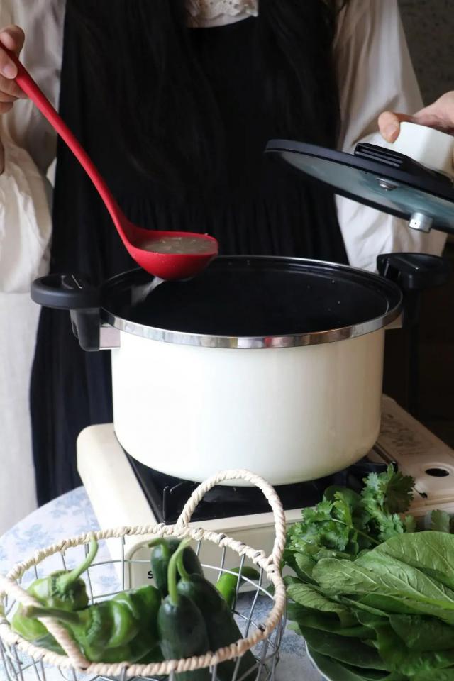 它采用精鐵鍛造搭配雙層琺瑯,是高標(biāo)準(zhǔn)搪瓷內(nèi)膽,耐磨防刮,天然抗菌,寶媽做輔食更安心。燉番茄、檸檬等酸性食物不腐蝕,受熱均勻不挑灶。