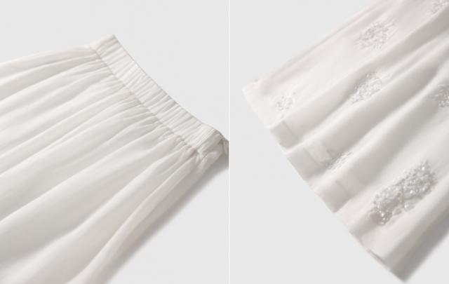 這條小白裙的刺繡源于奢牌高定工藝——優(yōu)雅法式白線刺繡,用簡單的色調(diào)展現(xiàn)繁花的華麗,詮釋了深邃的美學哲理。