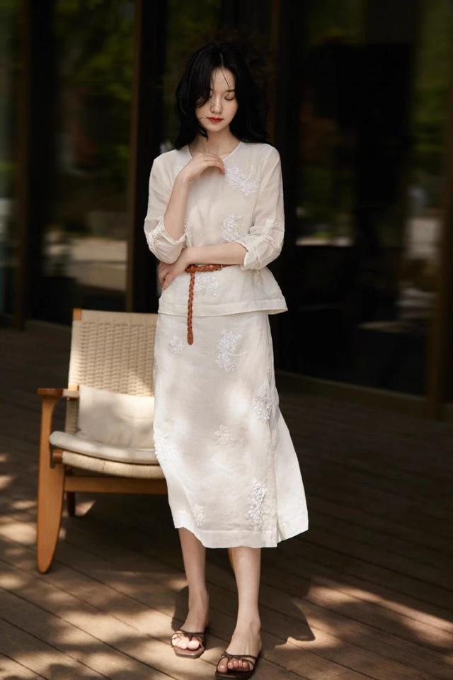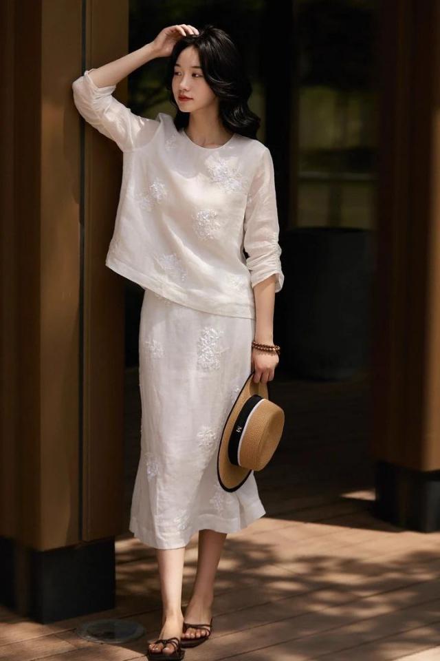 這款繁花亮片刺繡棉麻小白裙套裝,非常適合搭配簡約高跟鞋或小白鞋,再加上一個精致的小包,你就是街頭最靚的風景線。而且它能輕松應對不同場合,無論是約會、逛街還是參加正式活動,都毫無壓力。