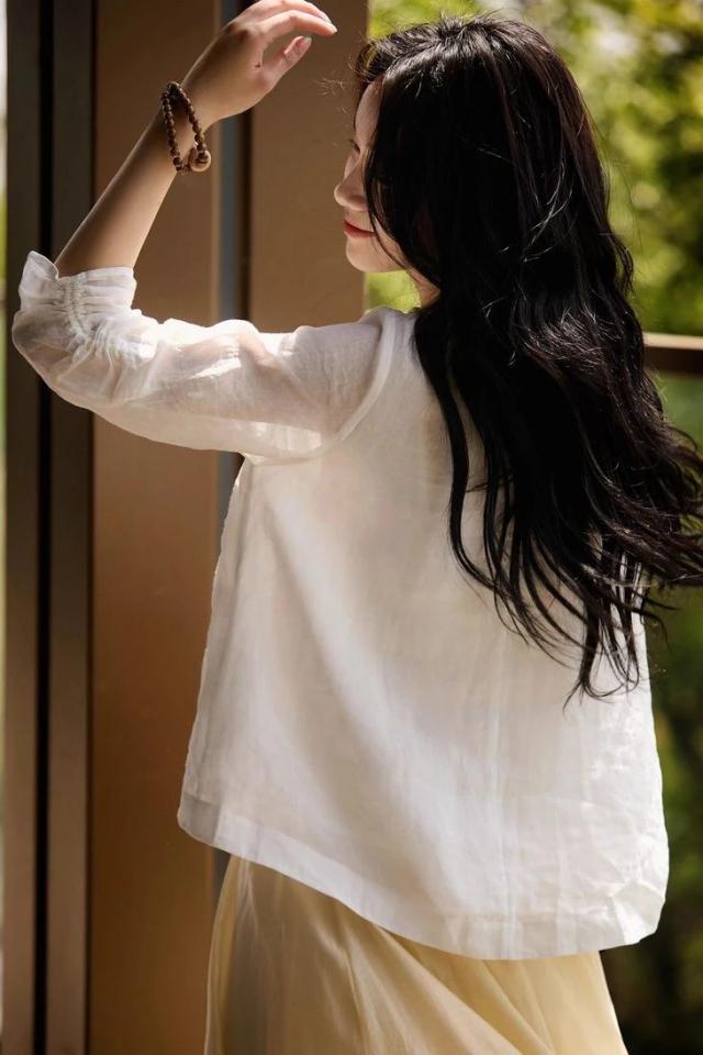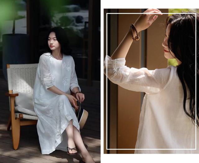 清晨推開窗戶,在蟬鳴未醒時的那一絲涼意,最懂白色的韻味。這個夏天,我的衣櫥被一片「留白的詩意」喚醒——那不是單調(diào)的蒼白,而是如同揉進竹林霧氣的云璃白。穿上這身去逛園子,看著荷葉上滾動的水珠,忽然明白所謂冰肌玉骨,并不在于皮相。那是衣料清透朦朧、穿風而過的靈動,是汗涔涔時依然不貼膚的矜持清氣,是明知盛夏喧囂,仍能信步徐行的淡泊心氣。