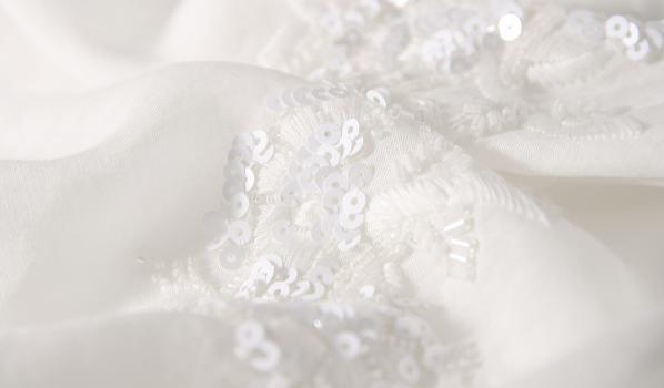 線與線之間密集的交匯,就像是人與內(nèi)心的對話。亮片與刺繡的結(jié)合,是靈感與技藝的交融,每一件小白裙上的刺繡作品,都是一曲無聲的詩,傳遞著靜謐之美。