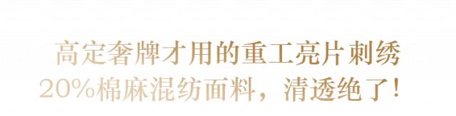 一眼入迷,重工打造的亮片刺繡,裙擺有著輕盈、松弛、自然靈動的通透感。亮片與刺繡的結(jié)合裝飾,將素雅和考究融合得恰到好處,優(yōu)雅中更多了一份恣意情懷,主打精致松弛。