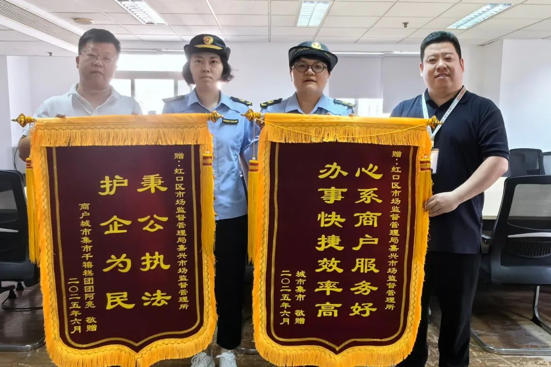 近日,虹口區(qū)市場監(jiān)督管理局嘉興所收到轄區(qū)內(nèi)兩家企業(yè)送來的錦旗。錦旗背后,是一個(gè)關(guān)于推行服務(wù)型執(zhí)法,彰顯法治溫度的故事→
