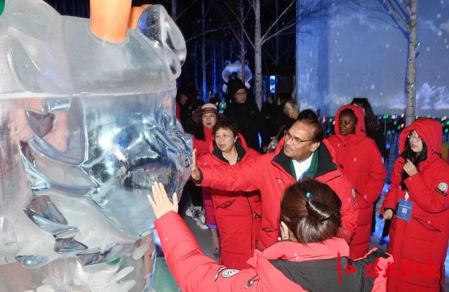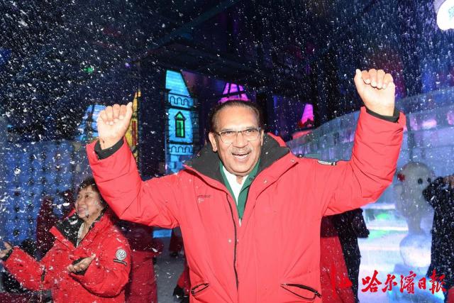 走進(jìn)冰雪大世界夢幻冰雪館,室內(nèi)外近40攝氏度的溫差,讓嘉賓們仿佛瞬間穿越到了冬季。不少嘉賓忍不住伸手觸摸冰雕雪雕,感受掌心傳來的透心涼。館內(nèi)的亞冬元素主題景觀、晶瑩剔透的海底王國、可愛的網(wǎng)紅大雪人、浪漫的冰封玫瑰、刺激的動感冰滑梯以及色彩斑斕的彩色冰雕等,讓嘉賓們沉醉其中,流連忘返。在中國生活了6年的中國外文局外籍專家德溫德爾·庫馬爾表示:“我的家鄉(xiāng)印度看不到冰雪,我工作的北京也沒有這么震撼的冰雕雪雕。我希望有機(jī)會在冬天來哈爾濱冰雪大世界,欣賞更加宏偉的冰建筑,也會把哈爾濱的美景、美食以及人們的熱情好客介紹給我在印度的朋友們。”