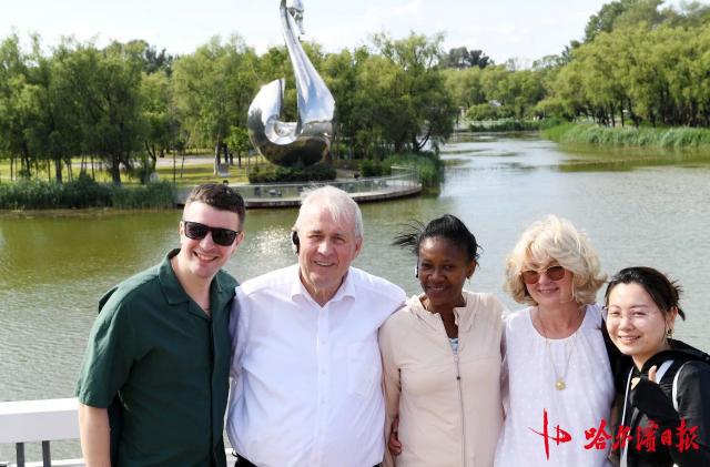 在太陽島風(fēng)景區(qū),觀光車在林蔭道間穿梭,盛夏時節(jié),冰城戶外涼風(fēng)陣陣。水閣云天觀景臺附近,歐式長廊與天鵝雕塑構(gòu)成了絕佳的拍照打卡點,英國博主司徒建國忍不住組織眾人即興合影留念。德國約翰·拉貝交流中心主席托馬斯·拉貝特別留意到了人鳥和諧共處的場景,他感慨道:“錦鯉與候鳥大方地接受人們的投喂,這種生態(tài)互動十分美好。”此外,島上露營地中哈爾濱市民的休閑方式,也成為了外賓了解本地生活的一個窗口。