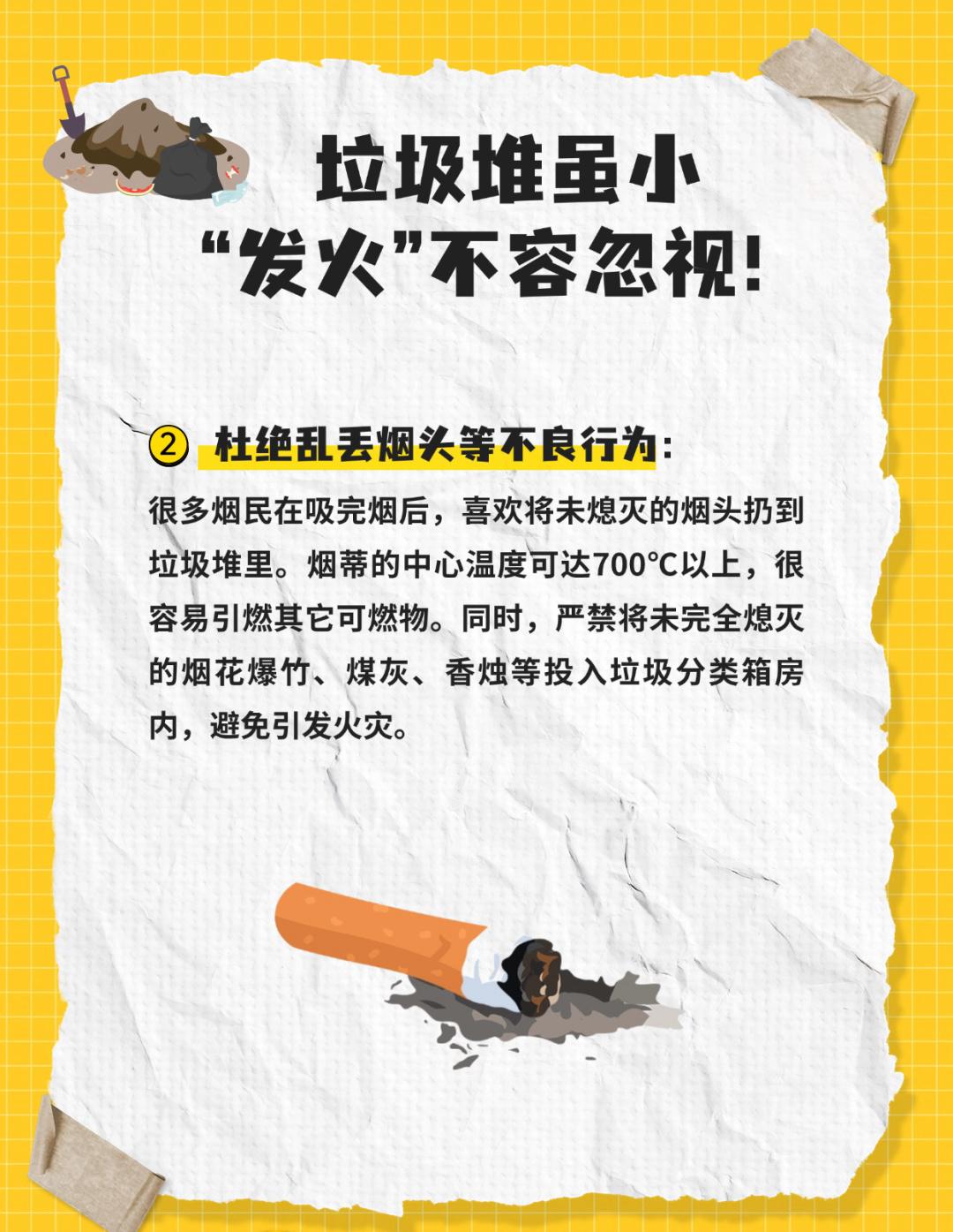 貴貴提醒,垃圾堆里雜物、易燃物較多,廣大居民朋友切記不可隨意焚燒垃圾,堆放的垃圾一定要及時清理。還有更多注意事項(xiàng)請查看。