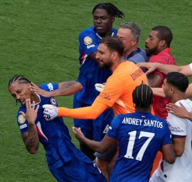 比賽結(jié)束后,若昂 - 佩德羅遭到巴黎主帥恩里克的鎖喉、掌摑,引發(fā)了雙方的大規(guī)模沖突。球迷不禁感嘆:在場(chǎng)上,若昂 - 佩德羅讓巴黎球員破防;在場(chǎng)下,他讓巴黎主帥失態(tài)??傊?,若昂 - 佩德羅無(wú)疑是這場(chǎng)世俱杯的大贏家。