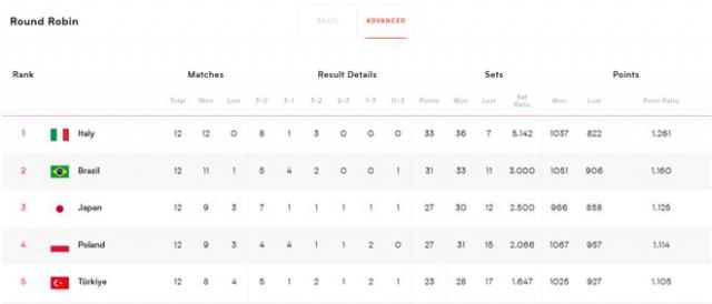 排在第二名的巴西女排是11勝1負,巴西和意大利是本屆世聯(lián)賽唯二拿到至少11勝的球隊,后續(xù)球隊最多只能拿到10勝。