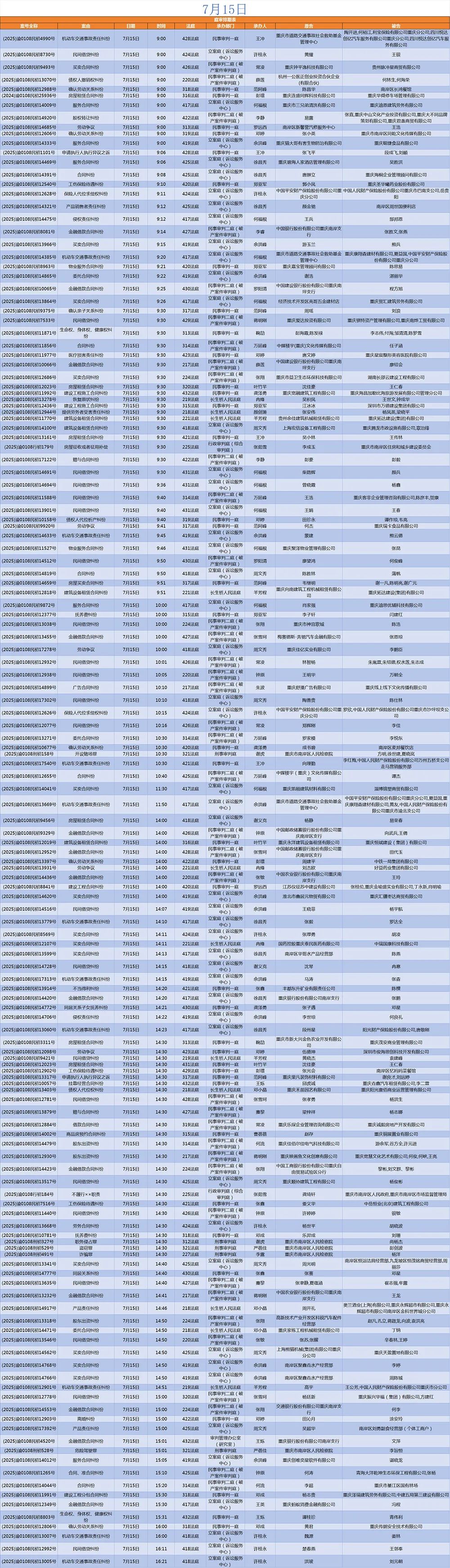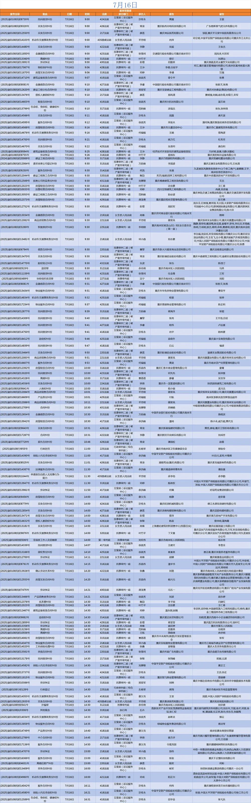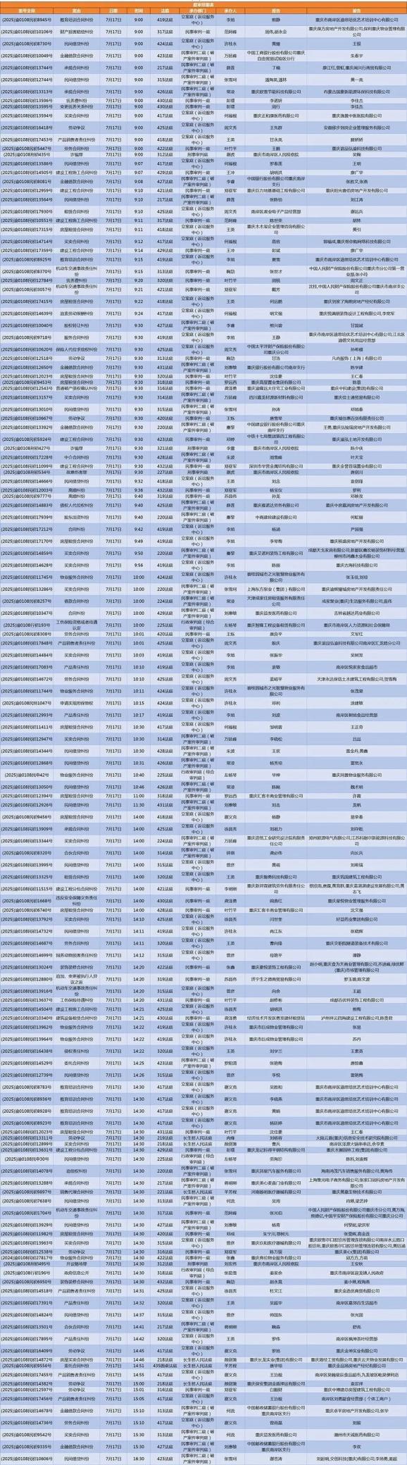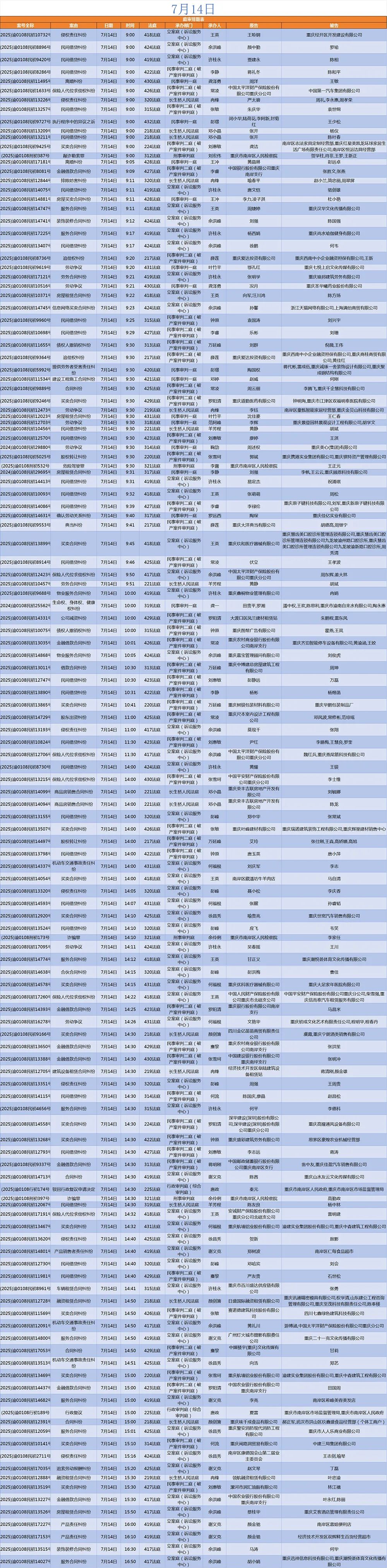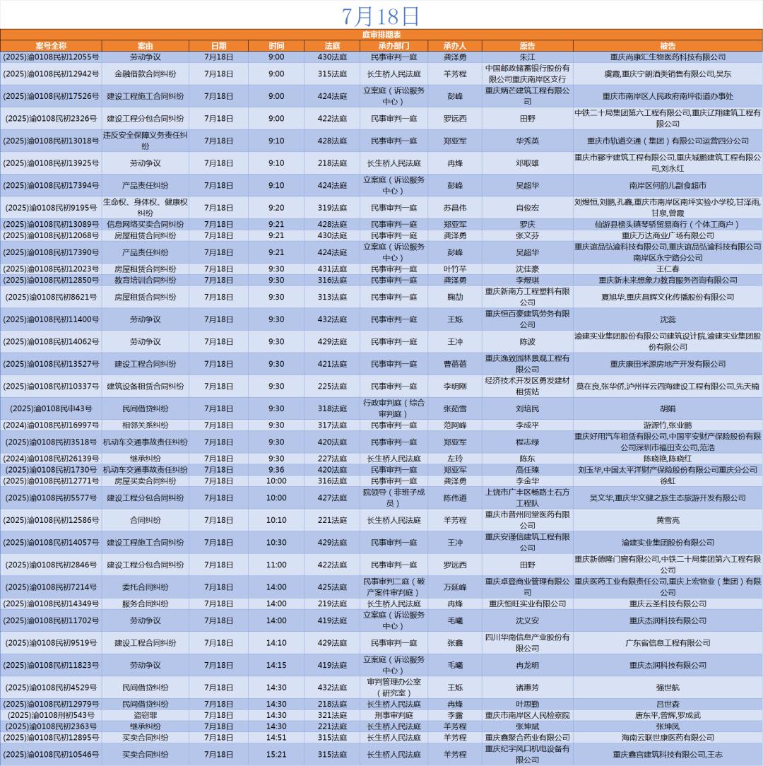 2025年7月14日至7月18日的庭審排期表已新鮮發(fā)布。