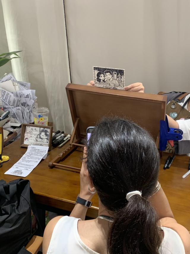 門店社交媒體賬號(hào)發(fā)布的“人生四格反應(yīng)瞬間”視頻,是 PIGGYOO 走紅的重要原因之一。畫師會(huì)像拍立得那樣,把成品畫作從畫板背后緩緩?fù)瞥?,顧客的笑容、淚水、驚嘆都被鏡頭記錄?!拔覀兿Mㄟ^(guò)有儀式感的過(guò)程,為顧客制造驚喜,提供真正的情緒價(jià)值?!币利愡_(dá)娜說(shuō)。