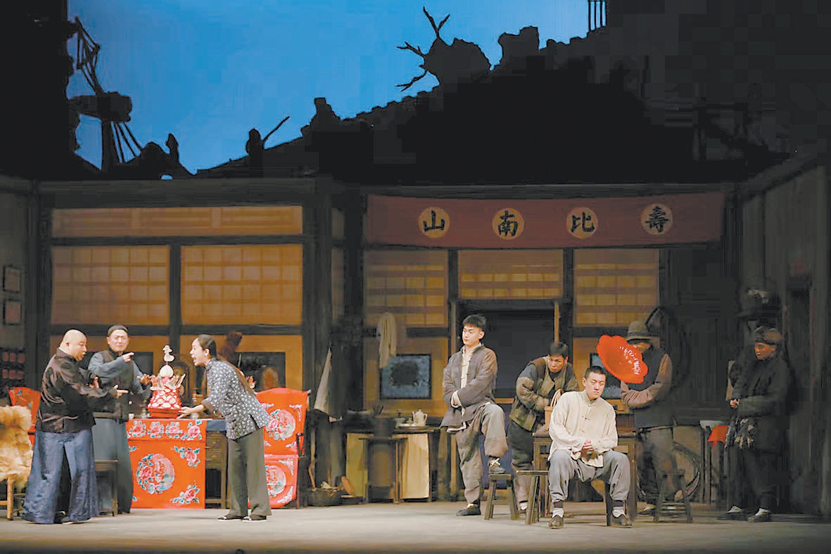舞臺(tái)之上,遠(yuǎn)處老北京城門樓子的剪影橫亙?cè)谔祀H;近處,木窗灰墻圍起一間充滿年代感的平房,屋內(nèi)虎妞正和父親劉四爺激烈爭(zhēng)吵——這一經(jīng)典劇情,正是出自那部家喻戶曉的《駱駝祥子》。