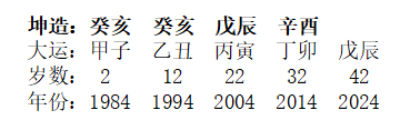 大運(yùn)中的寅木七殺,是化泄原局忌神亥水財星,透出丙印生身的關(guān)鍵之字,七殺寅木代表男人。再加上原局身弱且傷官生財,這個傷官辛酉到了大運(yùn),變成整個喜神組合的源頭,也就是辰、酉、辛、癸、亥、寅、丙、戊這樣一個流動路線。食傷代表著人的生殖器官,也代表人的技能,現(xiàn)在生七殺,食傷與七殺都成了得財?shù)脑搭^,再加上原局水旺主淫,所以這是一個用身體換取男人錢財與庇護(hù)的組合。最終,寅中透出的丙火,是讓命主最終受益的字。