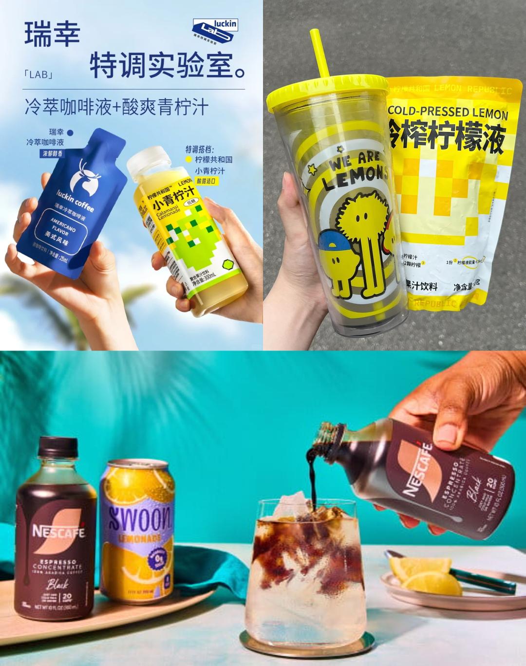 值得關(guān)注的是,國際巨頭雀巢近期也將目光投向“檸檬”,與檸檬水品牌Swoon聯(lián)合推出組合套裝,內(nèi)含雀巢濃縮黑咖啡、濃縮甜香草咖啡及兩罐Swoon經(jīng)典檸檬水,并附上特調(diào)指南供消費者參考。此套裝靈感源自TikTok上網(wǎng)友將柑橘味飲料與濃縮咖啡混合的 “自制飲品” 熱潮,進一步證明了檸檬與咖啡跨界搭配的市場潛力。